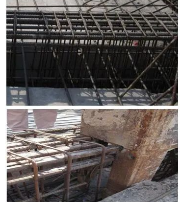 人防門洞四角必須設置加強筋:長度1000mm,斜45o綁扎,墻厚≦400mm,每角2φ16;墻厚>400mm,每角3φ16。